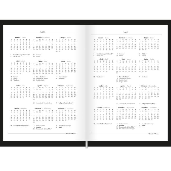 Agenda 2026 Costurada Compacta Preta Capa Dura 14,5 x 20,5cm 176 FL 1 UN Foroni