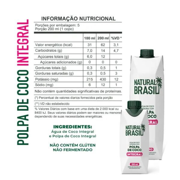 Água de Coco Integral com Poupa 330ml 1 UN Natural Brasil