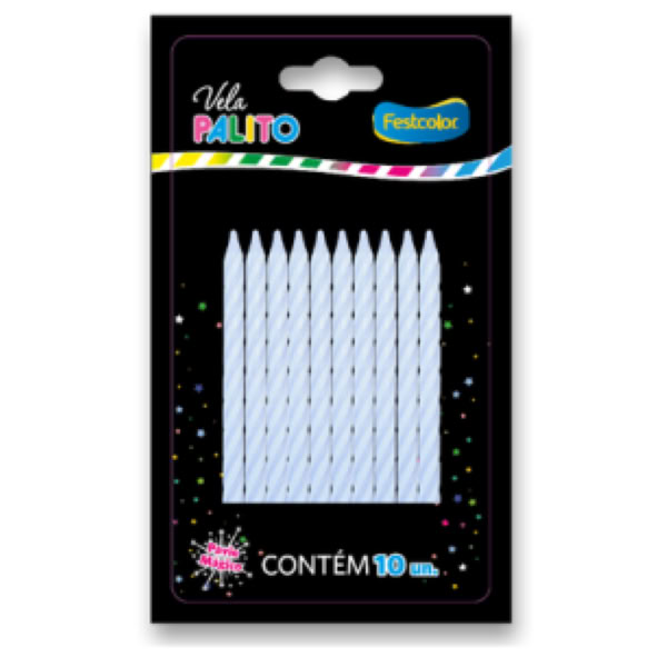 Vela Palito Espiral Festcolor Branca PCT C/10 UN