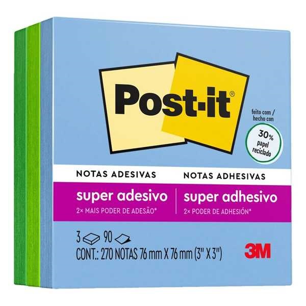 Bloco de Notas Adesivo Cubo Oásis 76x76mm 3 Cores 270 FL Post-It
