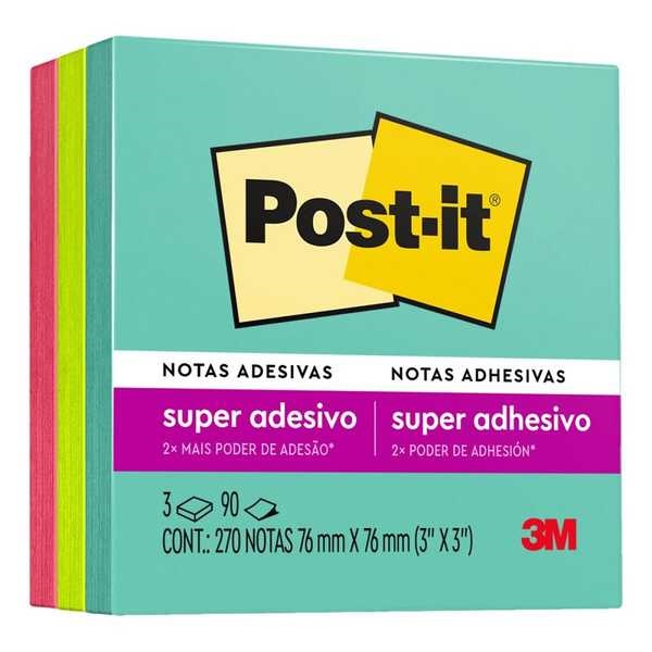 Bloco de Notas Adesivo Cubo Supernova 76x76mm 3 Cores 270 FL Post-It