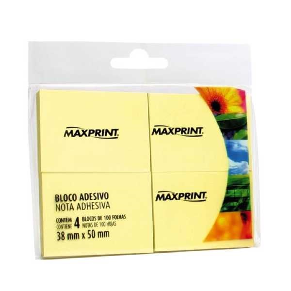 Bloco de Notas Adesivo Maxprint 38x50mm Cores Neon 4 UN 50 FL