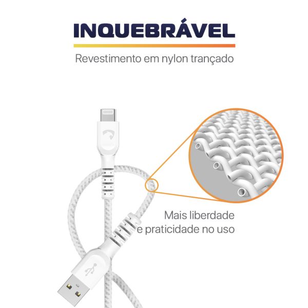 Cabo IPhone Amet Ultra Cable Lightning para USB-A MFI Nylon 1,2m Branco 1 UN