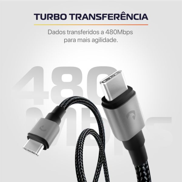 Cabo Turbo Power Amet USB-C 5A 60W Nylon 1,5m Branco 1 UN