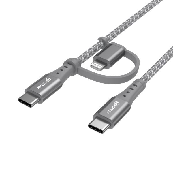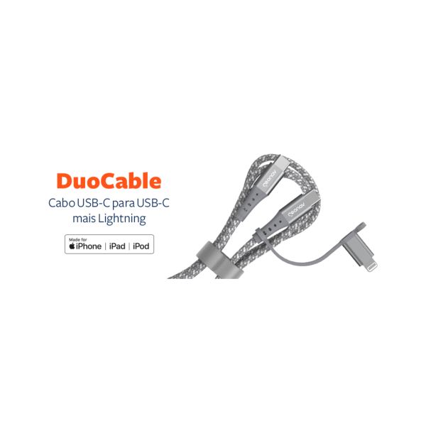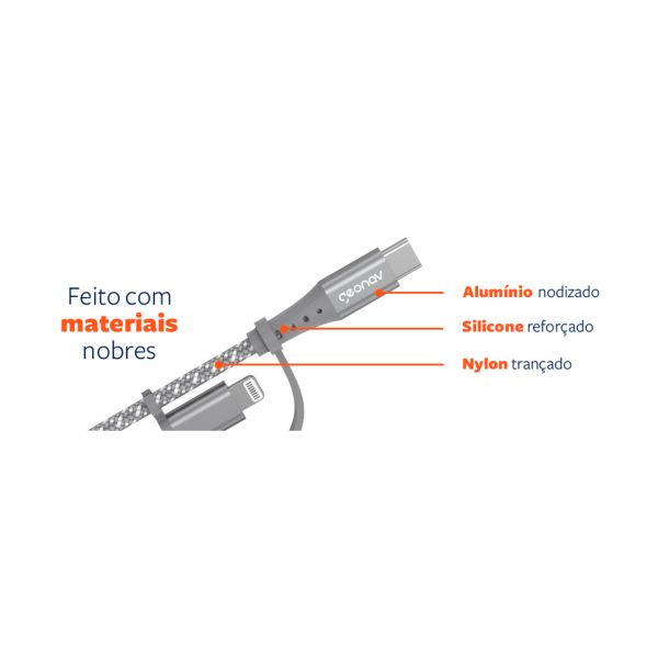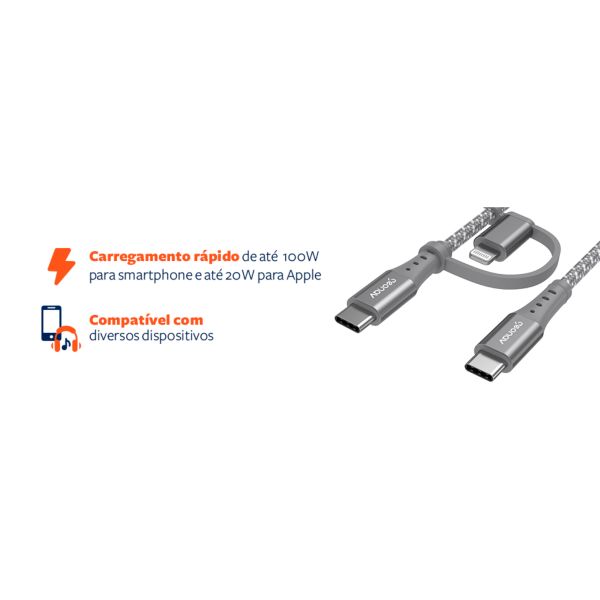 Cabo 2 em 1 Geonav para USB-C e Lightning LC21GR 1,5m Cinza 1 UN