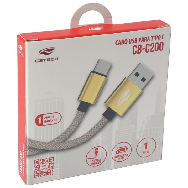 Cabo C3Tech USB e USB-C CB-C200GD 1m Dourado 1 UN