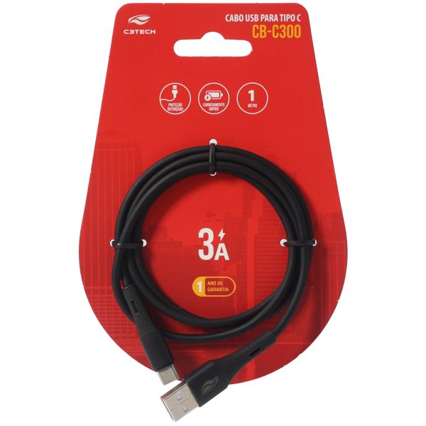 Cabo C3Tech USB e USB-C CB-C300BK 1m Preto 1 UN