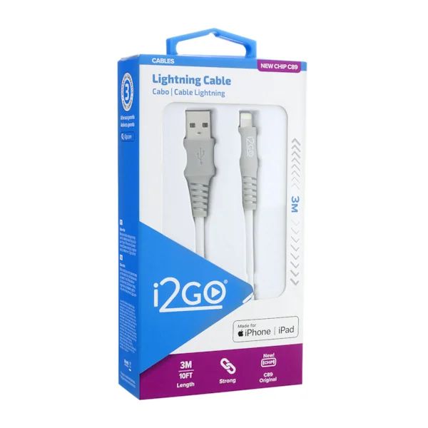 Cabo Lightning USB para iPhone 3m Branco 1 UN i2GO