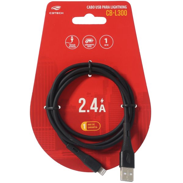 Cabo USB C3Tech Lightning CB-L300BK 1m Preto 1 UN
