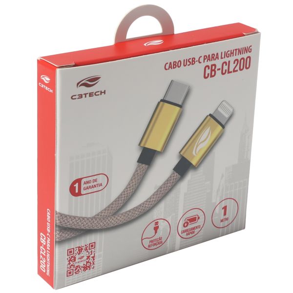 Cabo USB-C C3Tech Lightning CB-CL200GD 1m Dourado 1 UN