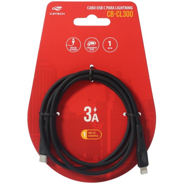 Cabo USB-C C3Tech Lightning CB-CL300BK 1m Preto 1 UN