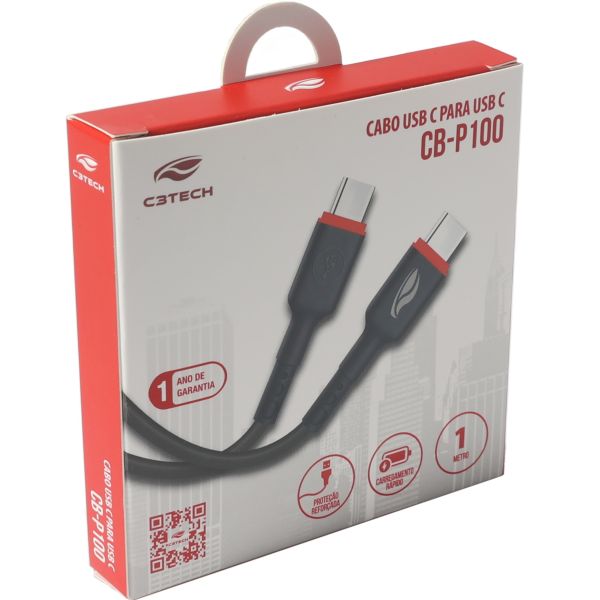 Cabo USB-C para USB-C C3Tech CB-P100BK 1 m Preto 1 UN