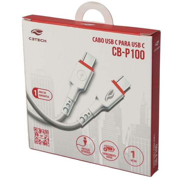 Cabo USB-C para USB-C C3Tech CB-P100WH 1 m Branco 1 UN