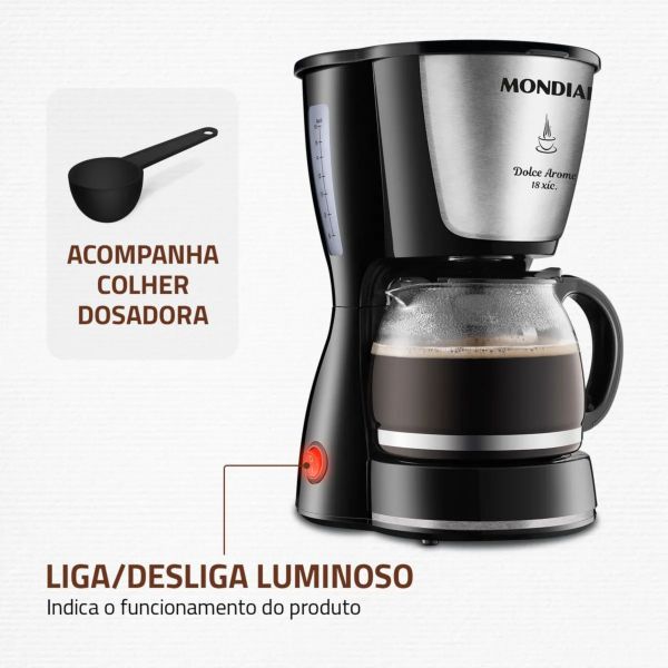 Cafeteira Mondial Dolce Arome II C-30-18X 127V Preto com Inox 1 UN