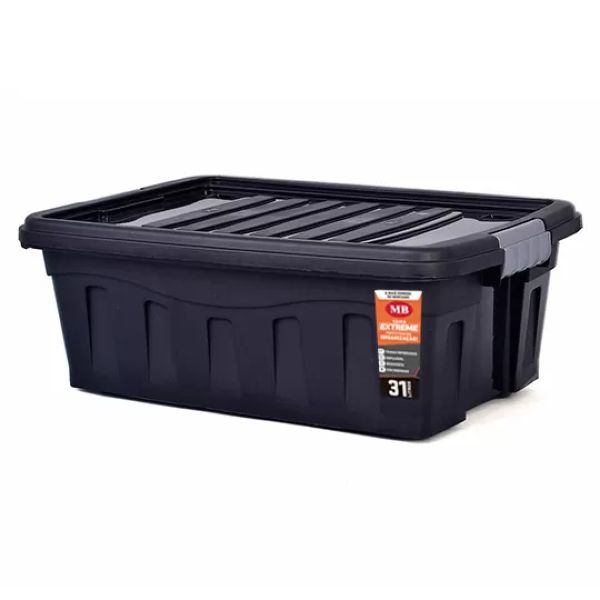 Caixa Organizadora Baixa com Rodas e Trava 31L Preta 1 UN Plásticos MB