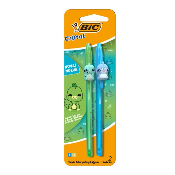 Caneta Esferográfica BIC Cristal Azul e Verde Fofa 1.0 com 2 UN