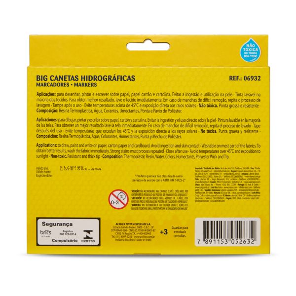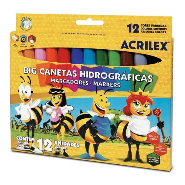 Caneta Hidrográfica Acrilex para Colorir Big Abelhinhas PCT com 12 Cores
