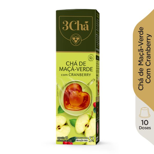 Capsula 3 Corações Chá Maçã Verde e Cranberry 30g CX 10 UN