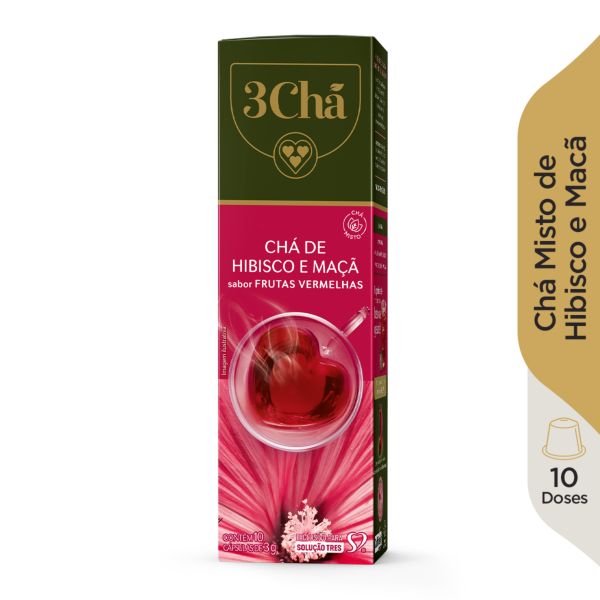 Capsula Chá 3 Corações Misto Hibisco e Maçã 30g 1 CX com 10 UN