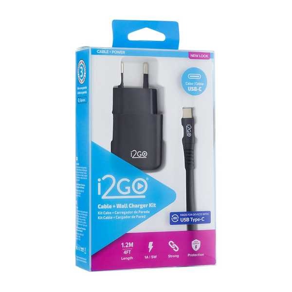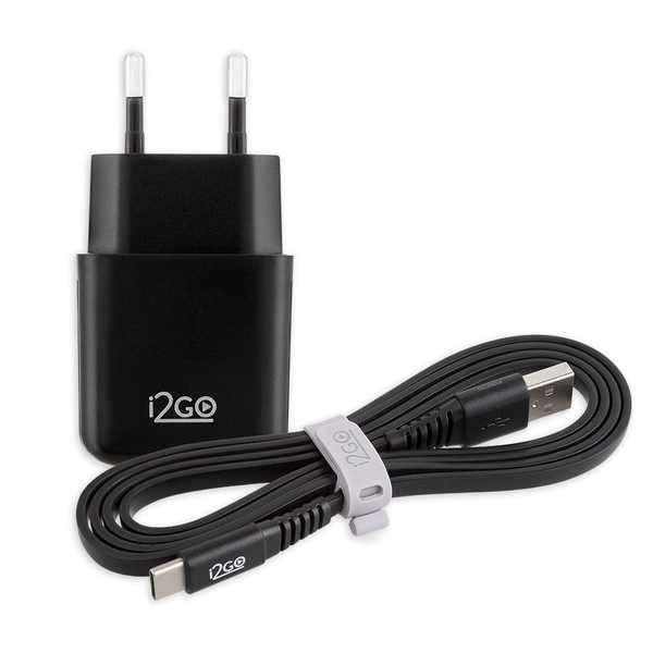 Kit Carregador de Parede USB + Cabo USB-C Preto i2GO