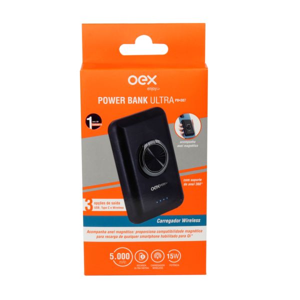 Power Bank Ultra 5000aAh PB307 USB e USB-C Preto 1 UN OEX