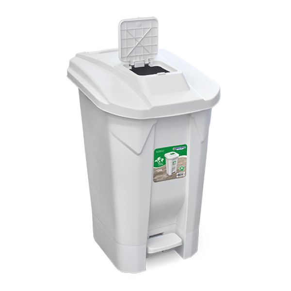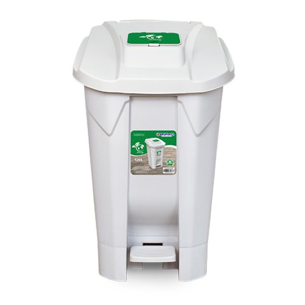 Lixeira Branca com Rodas e Pedal 120L 1 UN ARQPLAST