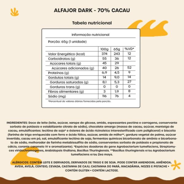 Alfajor de Chocolate Dark Com Doce de Leite 65g 1 UN Odara