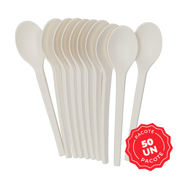 Colher Descartável para Refeição Bioplast Pacote com 50 UN Gimba
