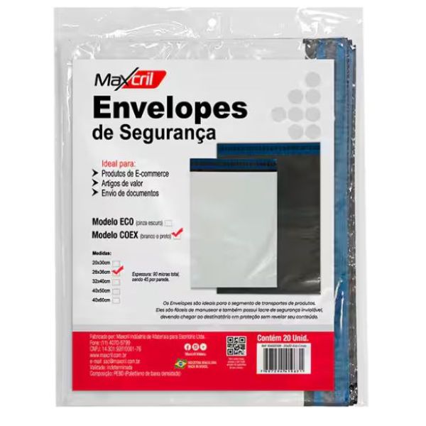 Envelope Plástico de Segurança 26x36cm Branco PT 20 UN Maxcril