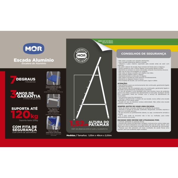 Escada Alumínio 07 Degraus para Uso Doméstico 1 UN Mor