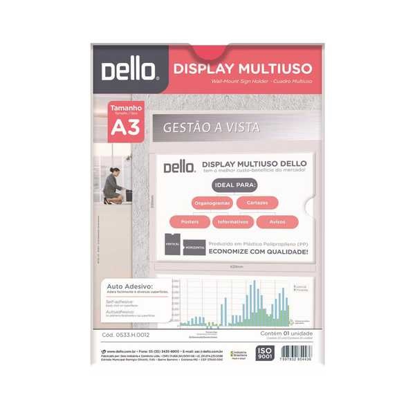 Expositor Quadro de Aviso Multiuso A3 420x5x300mm Cristal 0533 1 UN Dello