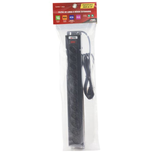 Filtro de Linha Force Line 12 Tomadas Bivolt 1,5m Preto 0091 1 UN