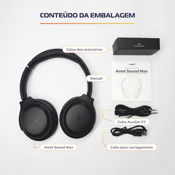 Headphone Amet Bluetooth 5.3 Sound Max EQMaster 65h Bateria Preto 1 UN