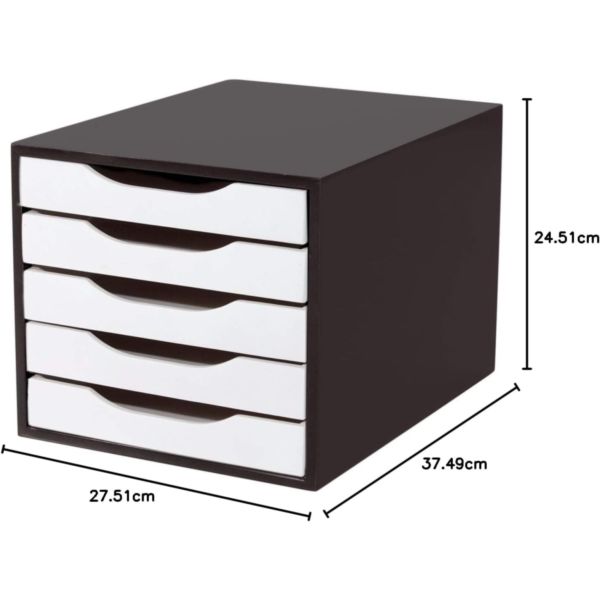 Gaveteiro em MDF com 5 Gavetas Black Piano e Branco 36x27x24cm 1 UN Souza