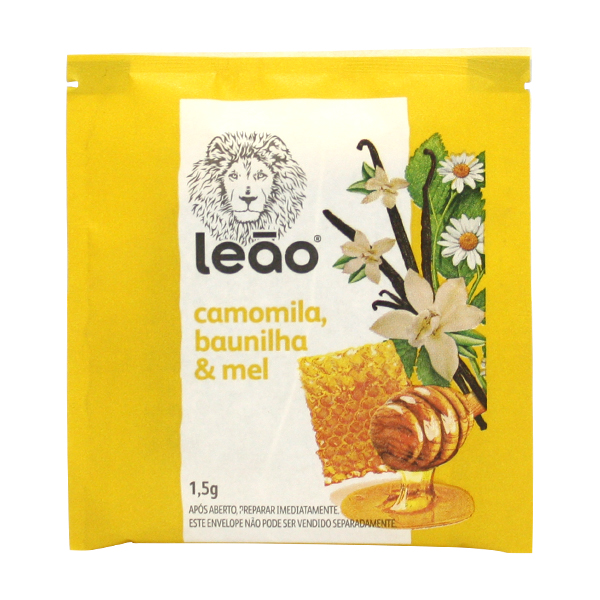 Chá Leão Camomila Baunilha e Mel Sachês Envelopados 15g CX C/10 UN