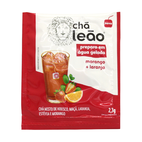 Chá Leão Cold Brew Morango e Laranja Sachês Envelopados 23g CX C/10 UN