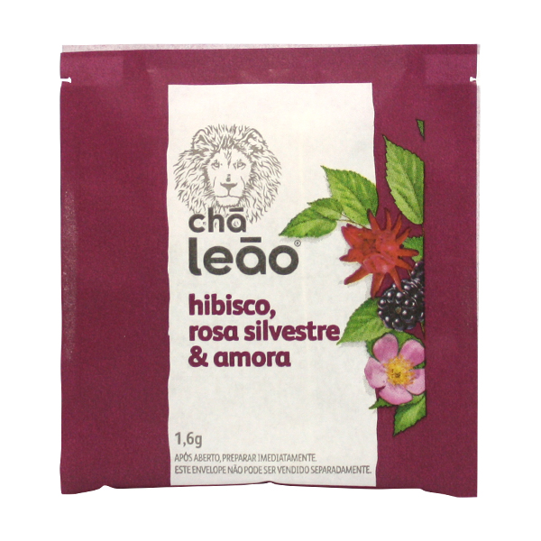 Chá Leão Hibisco Rosa e Amora Sachês Envelopados 16g CX C/10 UN