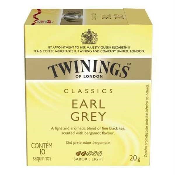 Chá Twinings Earl Grey Classics Preto Sachês Envelopados 20g CX C/10 UN