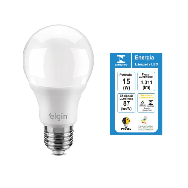 Lâmpada Led Bulbo 15w Bivolt 6500K Branco 1 UN Elgin