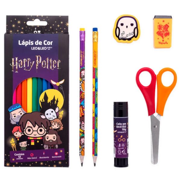 Lápis de Cor Leo e Leo Kit Escolar Harry Potter 12 Cores 1 UN