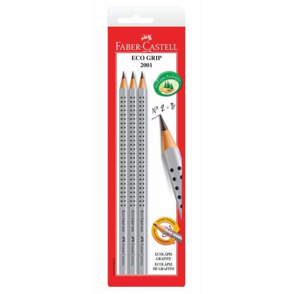 Lápis Faber Castell Preto N° 2 Triangular Corpo Cinza 3 UN