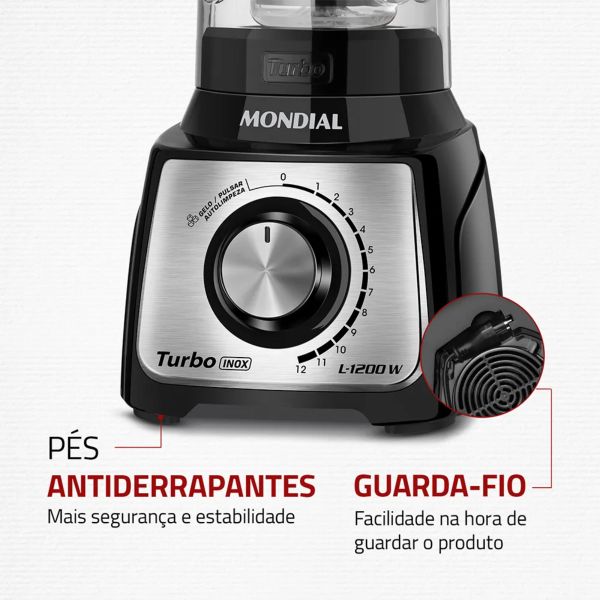 Liquidificador Mondial Turbo Inox L-1200W BI 127V 1 UN