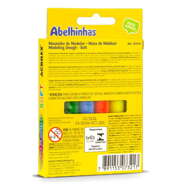 Massa de Modelar Acrilex Soft Abelhinhas 90g 6 UN