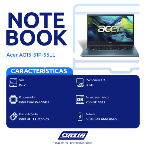 Notebook Acer 15,3' I5 8GB AG15-51P-55LL 1 UN