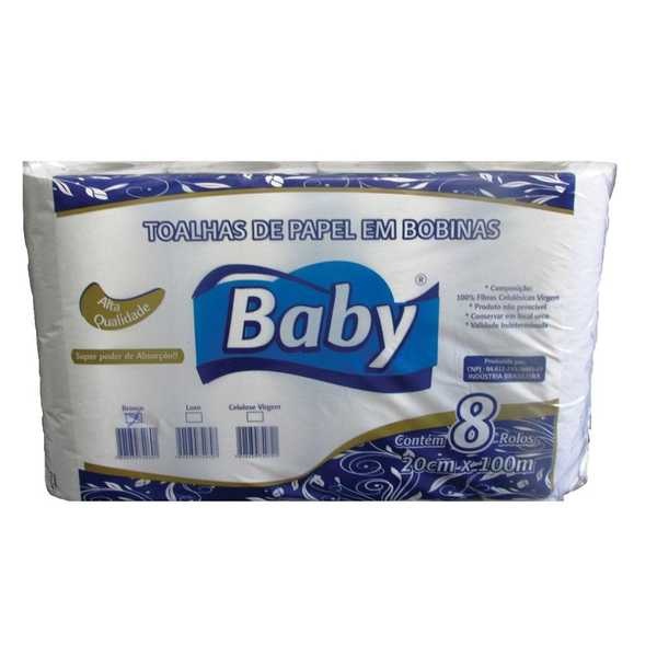Papel Toalha Bobina Baby 20cm x 100m Branco Reciclado PT 8 RL