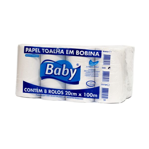 Papel Toalha Bobina Baby 20cm x 100m Luxo PT 8 RL