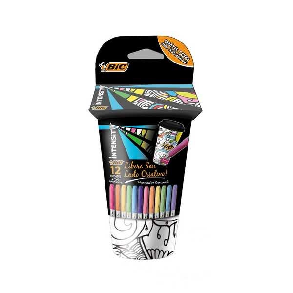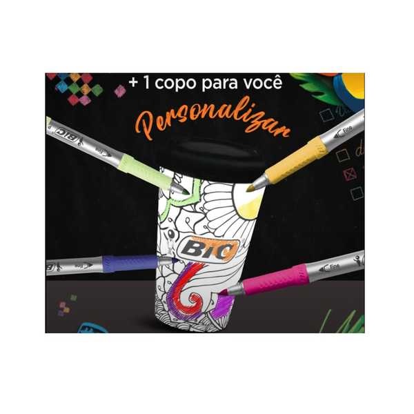 Pincel Marcador Permanente Marking Intensity Kit do Meu Jeito com Copo Personalizável 12 Cores Bic