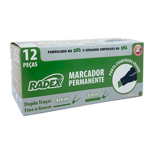 Pincel Marcador Radex Permanente Ponta Chanfrada Verde CX C/12 UN