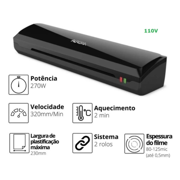 Plastificadora e Laminadora Aurora A4 LM4205H Preto 110V 1 UN