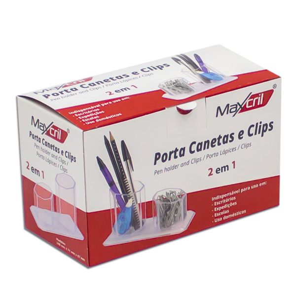 Porta Lápis e Clips Maxcril Duplo Cristal 1 UN